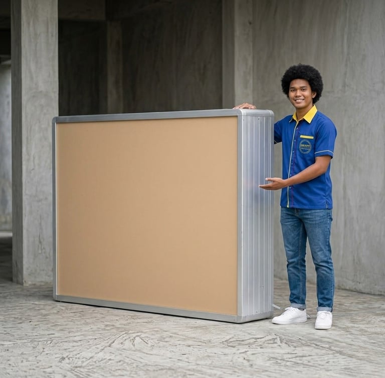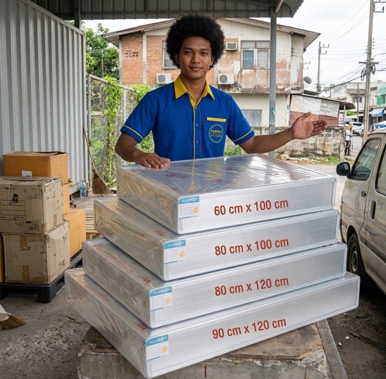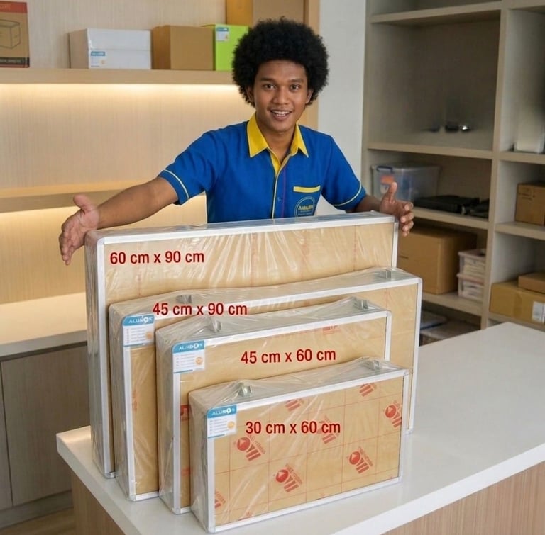Material : Papan Akrilik ; Cover Alumunium ; Stiker
